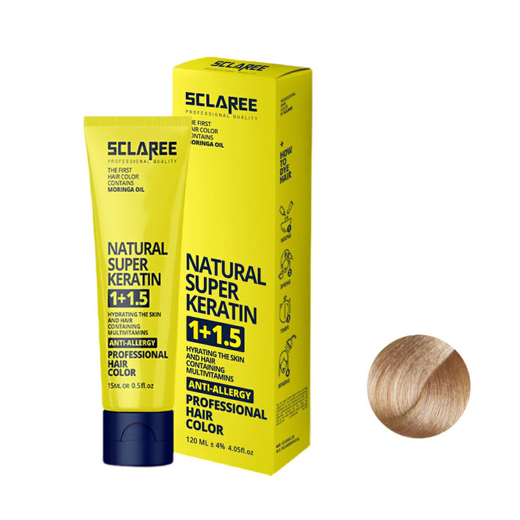 رنگ موی اسکلاره یکی از محصولات شرکت اسکلاره بسیار با کیفیت است، این رنگ مو با فرمولاسیون ایتالیایی میتواند نظر مصرف کنندگان را به خود جلب کند. رنگ موی اسکلاره اولین رنگ مو حاوی روغن حیاتبخش مورینگا است. این رنگ مو حاوی ویتامین B5، روغن زیتون، آرگان، آلوئهورا و روغن مورینگا است که هرکدام از این مواد، در سلامت موها و جلوگیری از آسیب رسیدن به آن موثر است. روغن مورینگا موجود در این رنگ قابلیتِ آنکه موها را قویتر کند دارد همچنین موجب آبرسانی پوست سر، مبارزه با موخوره، تحریک رشد مو، پاکسازی پوست، مستحکم و سفتکردن پوست و کمک به رفع خشکی پوست میشود. این رنگ مستحکمترین تارهای مو را به شما هدیه میدهد.