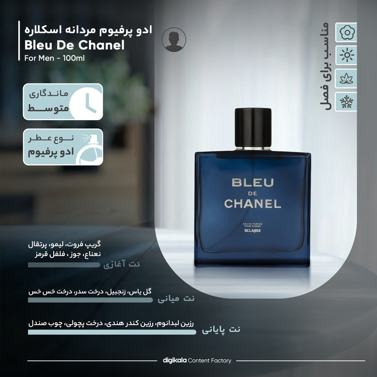 ادوپرفیوم مردانه اسکلاره مدل Bleu De Chanel حجم 100 میلیلیتر