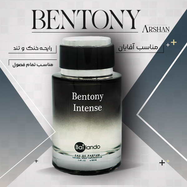 ادوپرفیوم مردانه BENTONY INTENSE دارای ظاهر شیشه ای استوانه ای شکل با رنگ مشکی است که همزمان حس کلاسیک و مدرنیته را برای شما آقایان خوش پوش تداعی میکند . این عطر در نت های آغازین خود رایحه هایی از چوب صندل ، جوز و زنجبیل را به مشام شما می رساند و به مرور زمان اسانس های لیمو و نعناع فضا را پر خواهد کرد . عطر بنتونی اینتنس دارای رایحه تلخ و خنک است که به شدت برای قرارهای کاری پیشنهاد میشود .